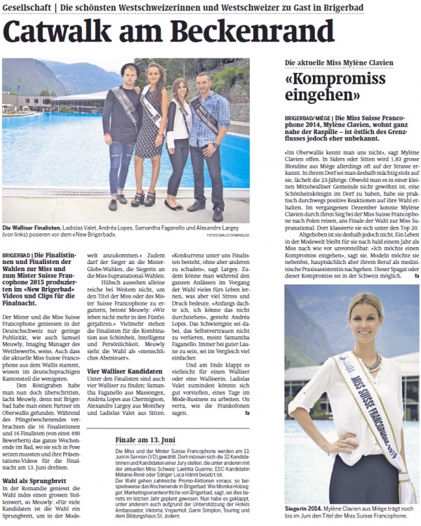 Die Finalistinnen und Finalisten der Wahlen zur Miss und zum Mister Suisse Francophone 2015 produzierten im «New Brigerbad» Videos und Clips für die Finalnacht.